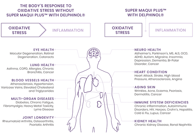 Regular use of Super Maqui Plus™ with Delphinol® lowers Ox-LDL levels. The transcription factor nuclear factor-kB (NF-kB) is activated by oxidative stress and pro-inflammatory stimuli, and also controls the expression of numerous genes involved in the inflammatory response.
